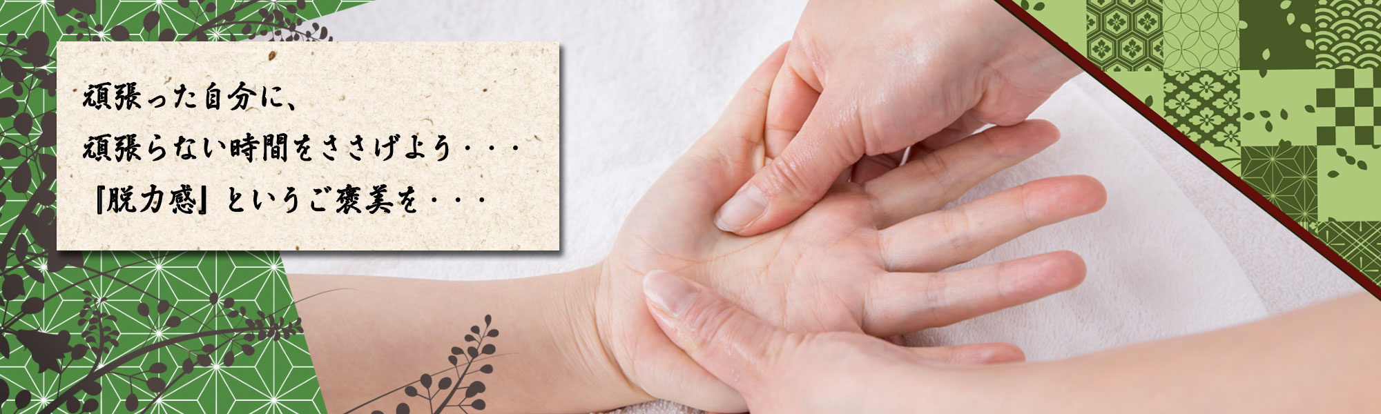 手の平、甲、肘までを揉み子さんが優しく丁寧に揉み解し心身共に、体の力を